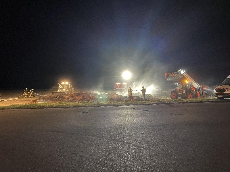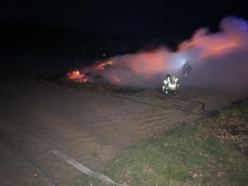 Es brannten auf dem Feld gelagerte Stroh/Misthaufen mit ca.150m² in voller Ausdehnung. Unter umluftunabhängigem Atemschutz gingen 15 Kameraden mit insgesamt 4 C- Rohren, 1 B- Rohr, Schaum als Netzmittel sowie Wärmebildkamera vor. Unterstützt wurden wir dabei von 2 Treckern, die die Haufen auseinander zogen. Durch umfangreich nötige Löscharbeiten zog sich der Einsatz stark in die Länge.