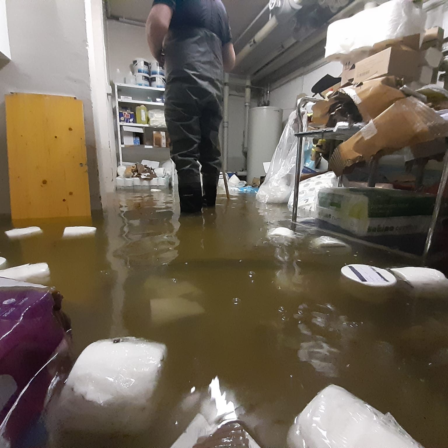 Mit vereinten Kräften und zwei Tauchpumpen, einem Wassersauger und einigem Kleingerät konnte das Wasser beseitigt und der Keller wieder weitestgehend trockengelegt werden.