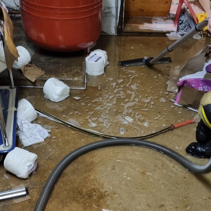 An der Einsatzstelle angekommen, fanden die Kameraden ca. 80 cm hohes Wasser im Keller vor. Ursache des Schadens war ein abgerissenes Ventil.