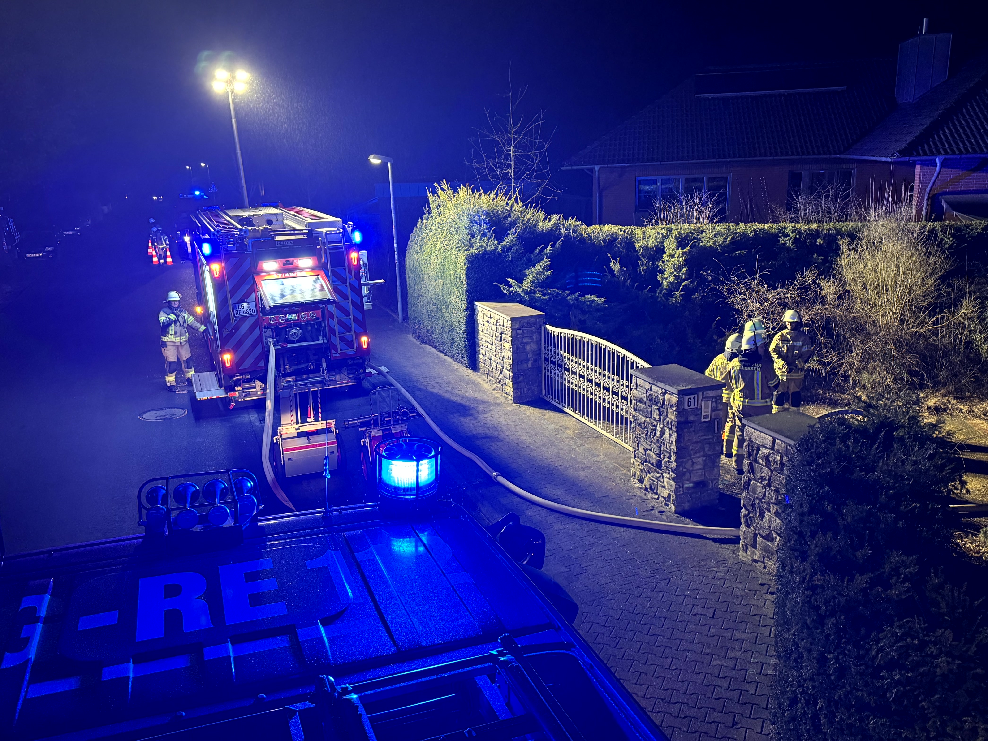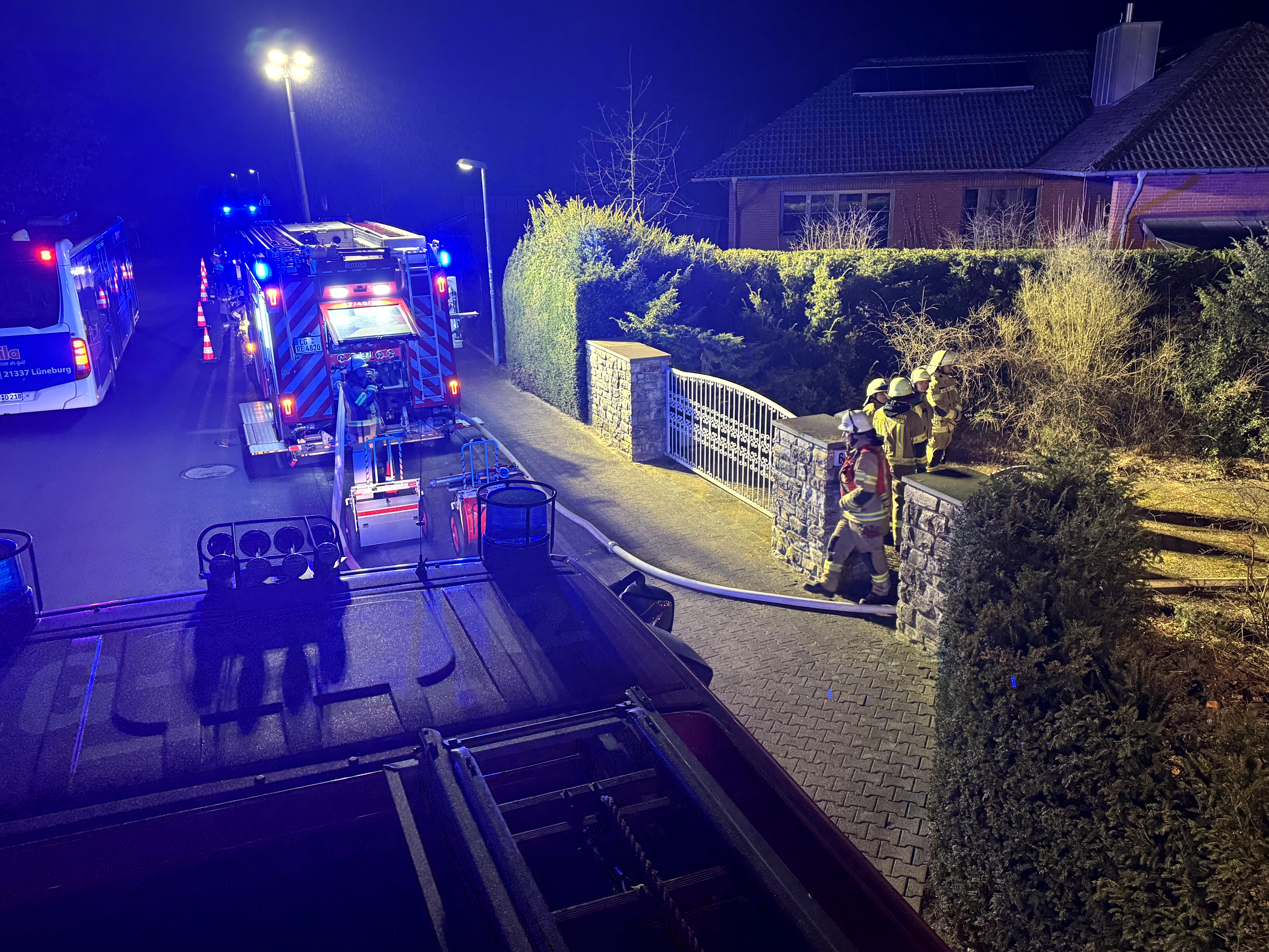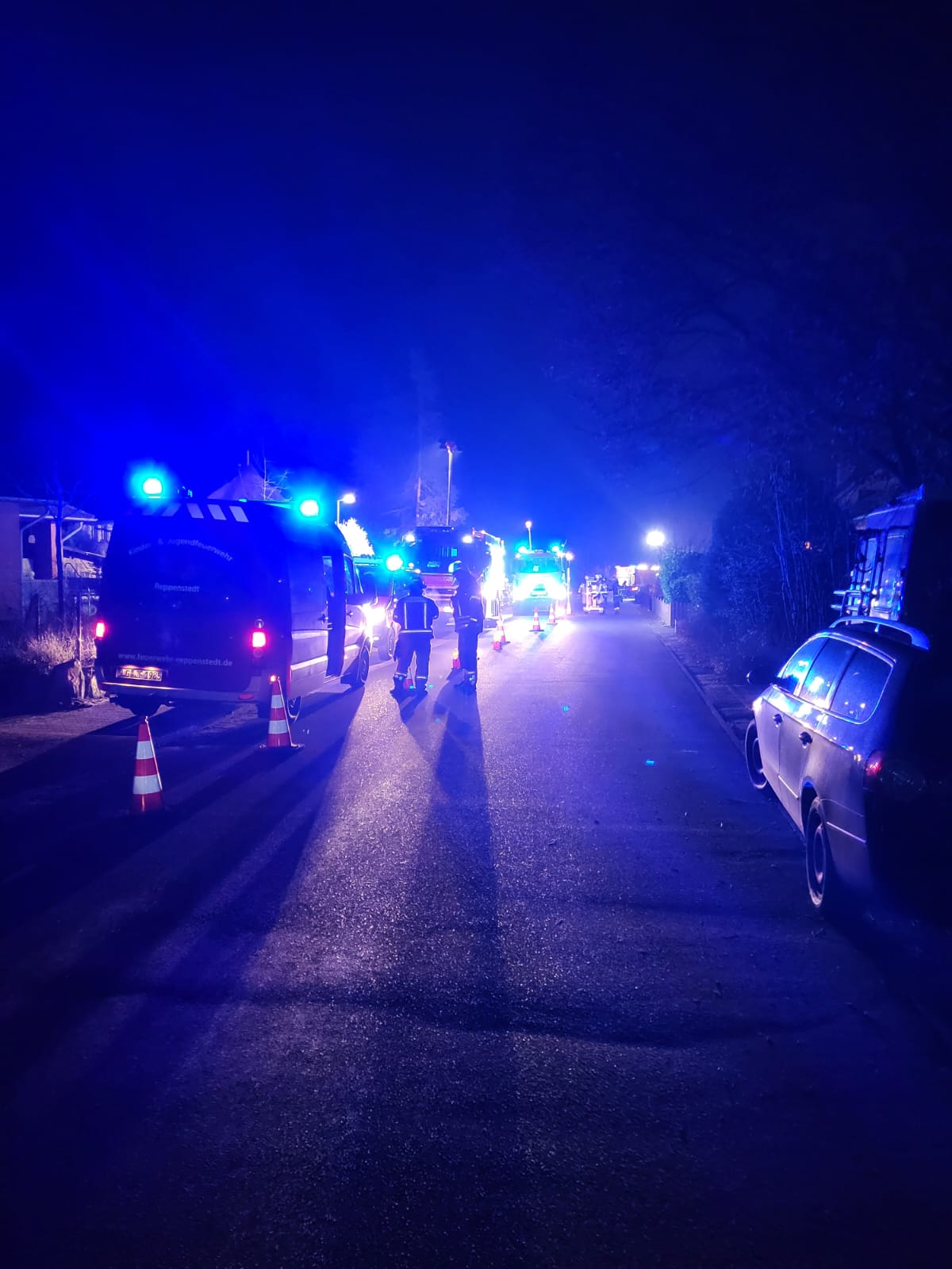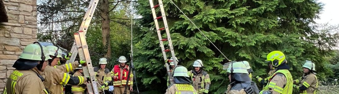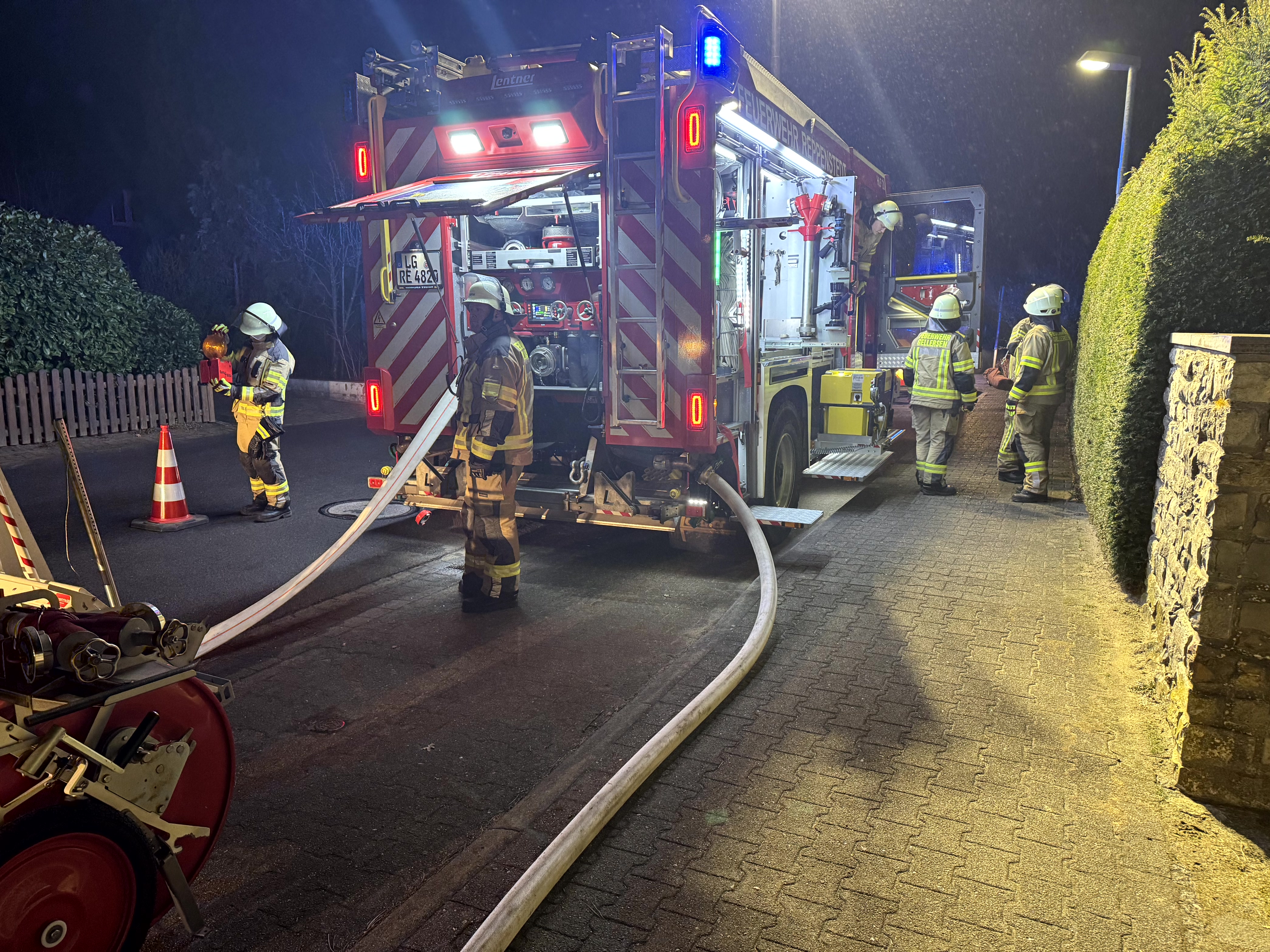 Unsere Atemschutztrupps gingen zügig zur Menschenrettung vor, während parallel der Brand im Keller be-kämpft wurde. Die Person im Obergeschoss konnte sicher über eine tragbare Leiter gerettet werden. Insge-samt waren 30 Kameradinnen und Kameraden im Einsatz, unterstützt durch mehrere Trupps unter Atem-schutz und zwei C-Rohre zur Brandbekämpfung.