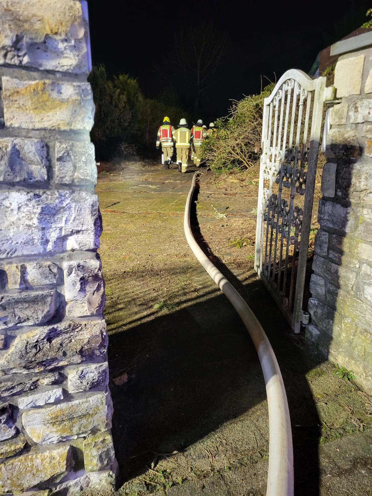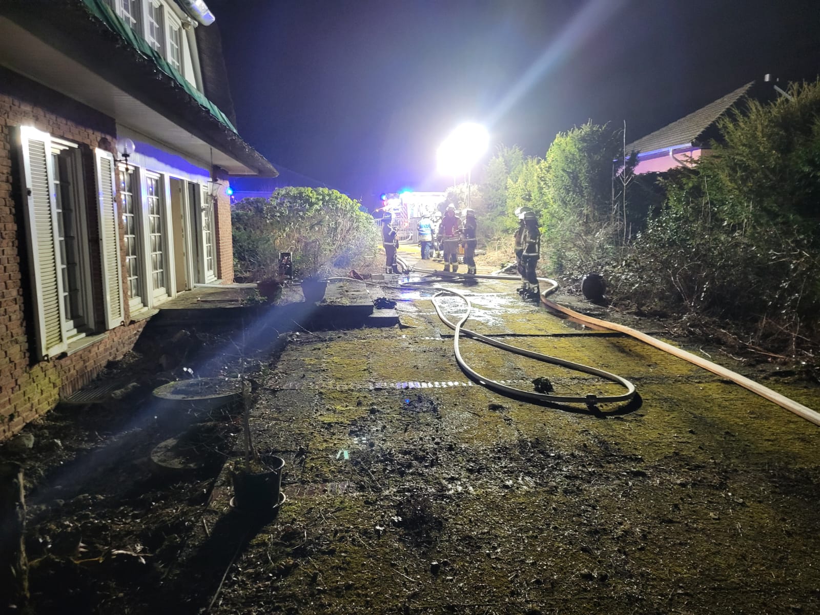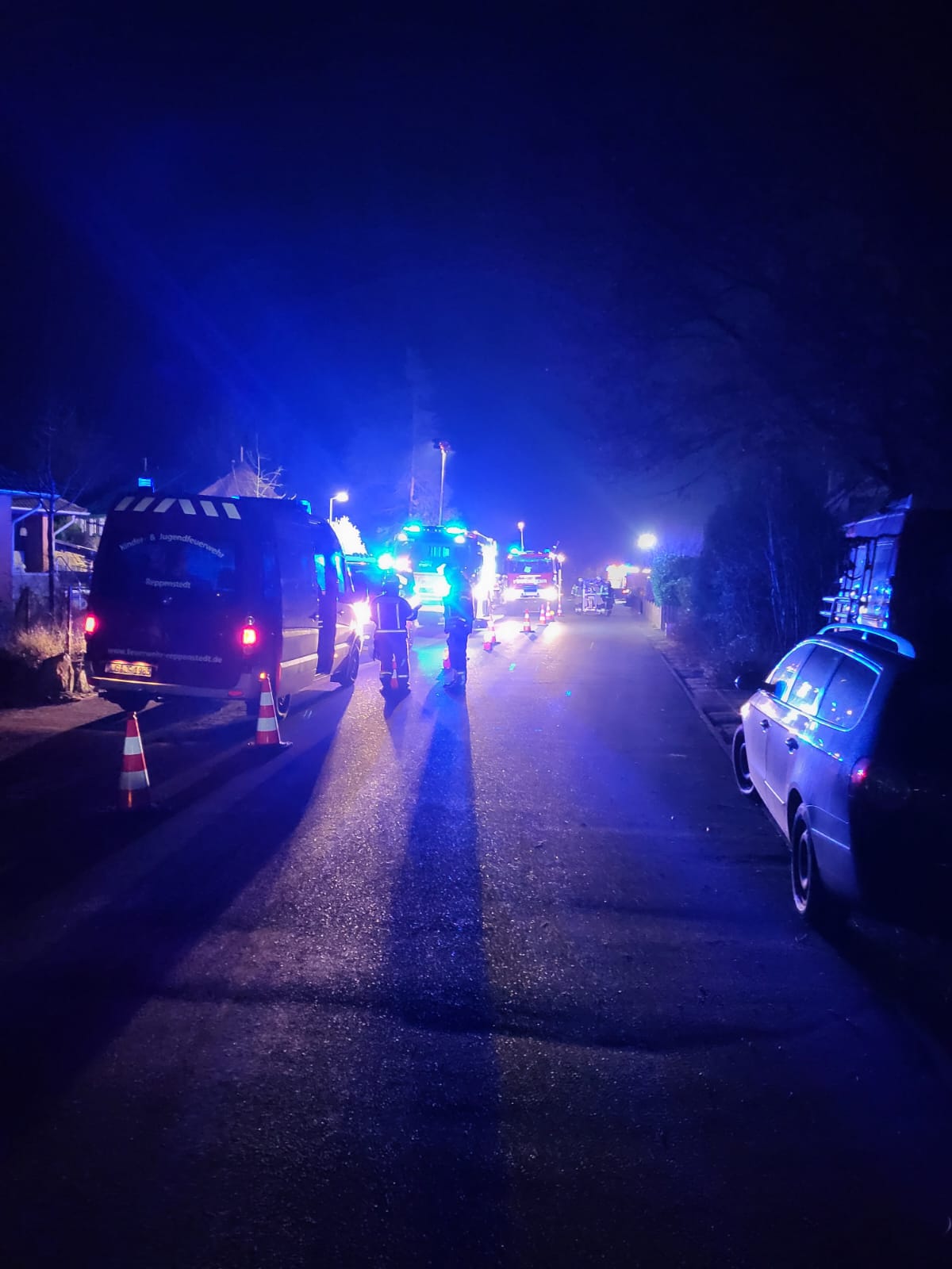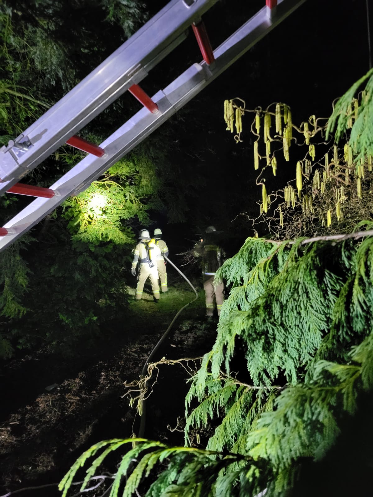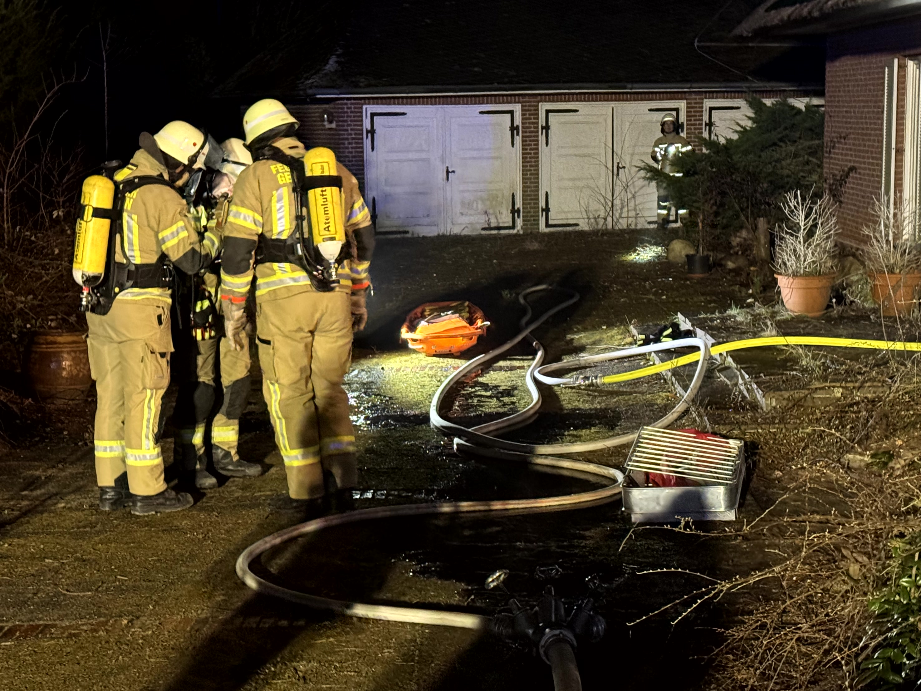 Unsere Atemschutztrupps gingen zügig zur Menschenrettung vor, während parallel der Brand im Keller be-kämpft wurde. Die Person im Obergeschoss konnte sicher über eine tragbare Leiter gerettet werden. Insge-samt waren 30 Kameradinnen und Kameraden im Einsatz, unterstützt durch mehrere Trupps unter Atem-schutz und zwei C-Rohre zur Brandbekämpfung.