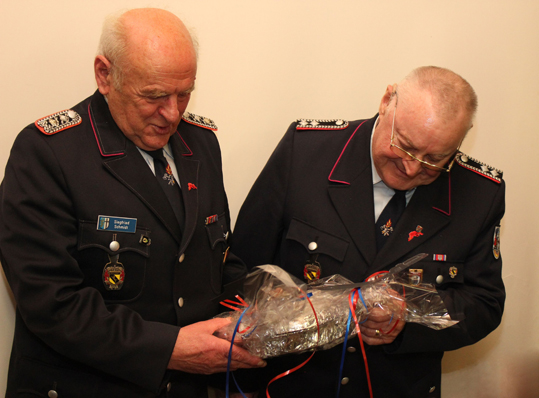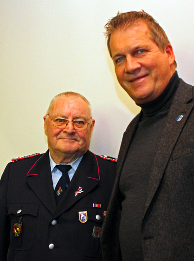 Eine besondere Ehrung nahmen dann Udo Kleis und der Gemeindebrandmeister Frank Thieme vor: sie ehrten Edwin Kleis für 50 Jahre Mitgliedschaft in der Feuerwehr, was eine enorme Leistung ist.
