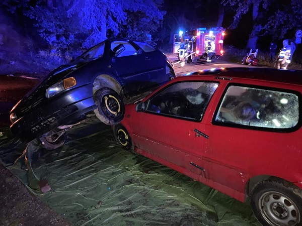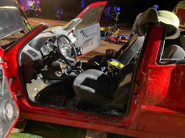 In den PKWs befanden sich zwei Insassen, davon war eine Person schwer verletzt und musste mit Schere und Spreizer freigeschnitten werden. Angenommen wurde, dass wir vor dem Rettungsdienst am Einsatzort angekommen sind. So musste auch die Erstversorgung des Schwerverletzten von den Kameraden übernommen werden.