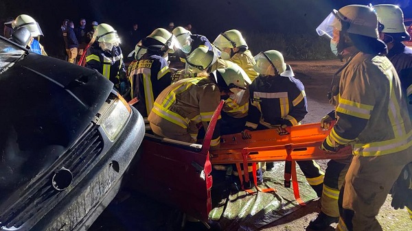 In der Nähe von Gut Brockwinkel kam es angenommerweise zu einem tragischen Verkehrsunfall mit zwei PKWs. Geübt wurde nicht nur die technische Hilfeleistung, sondern ebenfalls Vermisstensuche und medizinische Erstversorungung.