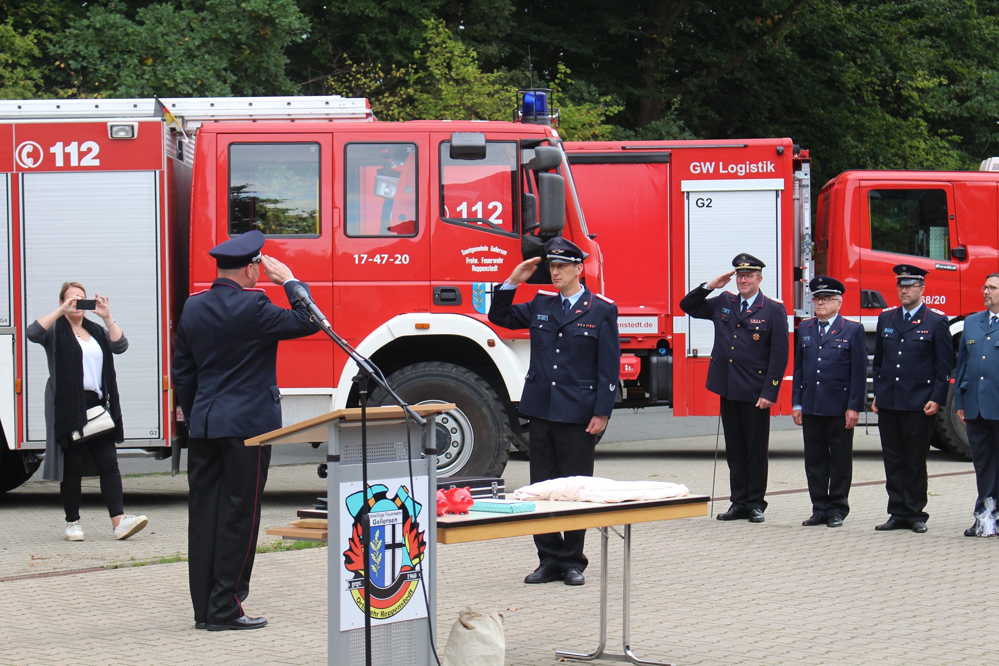 Im Zuge des offiziellen Appells wurden auch Ehrungen und Ernennungen nachgeholt, die seit Beginn der Pandemie noch nicht erfolgen konnten. So wurden die Kameraden Friedel Thieme und Edmund Gertz für 60 Jahre Feuerwehr und Eric Herold für 40 Jahre Feuerwehr geehrt. Hendrik Conrads wurde von Gemeindebrandmeister Christian Schlüter zum Oberlöschmeister ernannt.