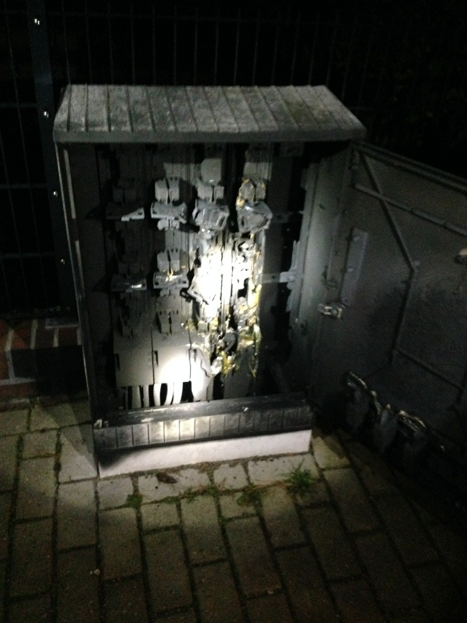 Auch am 14.01.2014 brauchten die alarmierten Kräfte nicht tätig zu werden. Ein Stromkasten am Schnellenberger Weg war verschmort und es kam zu einem kurzen Brand, der beim Eintreffen des ersten Fahrzeugs aber schon wieder erloschen war. Die Einsatzstelle konnte dann an die ebenfalls alarmierte Avacon übergeben werden.